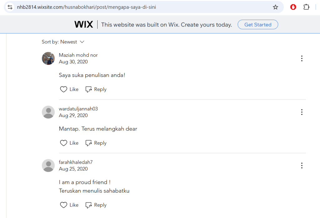 *Penulisan asal bertarikh 25 Ogos 2020 di laman sesawang Wix, akan tetapi saya tidak meneruskan di sana kerana negara asal syarikat ini adalah Is****.